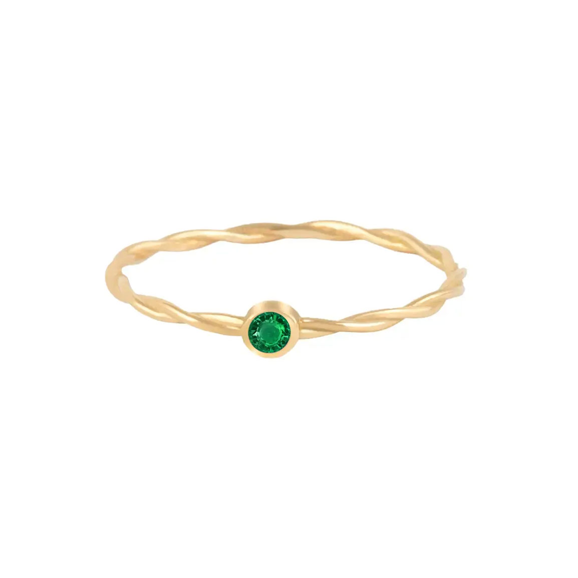 انگشتر طلا سبک طنابی نگین دار سبز سایز52 0.57 گرم