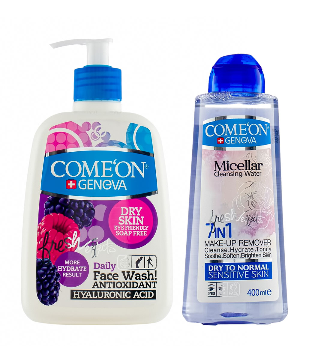 پک ژل شستشوی صورت پوست خشک 500میل و محلول میسلار واتر پوست نرمال و حساس 400میل