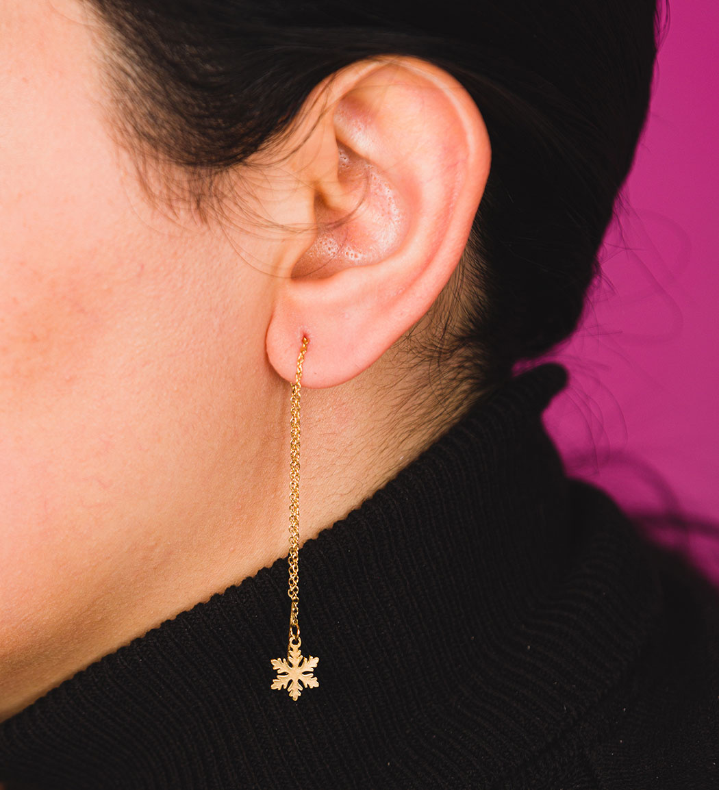 گوشواره بخیه طلایی مدل دانه برف کد ANM78