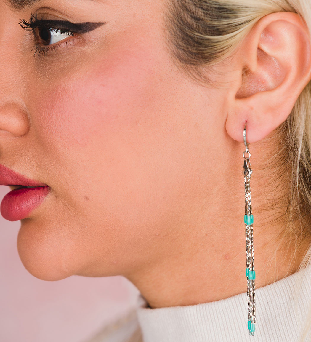 گوشواره بلند نقره ای فیروزه ای کد ANM81