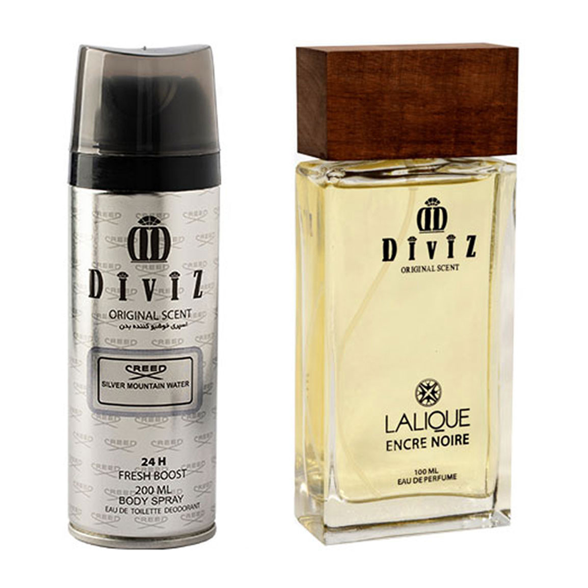 پک هدیه روز مرد 2 عددی شامل اسپری بدن مدل Creed Silver Mountain Water و ادوپرفیوم مدل Lalique Encre Noire