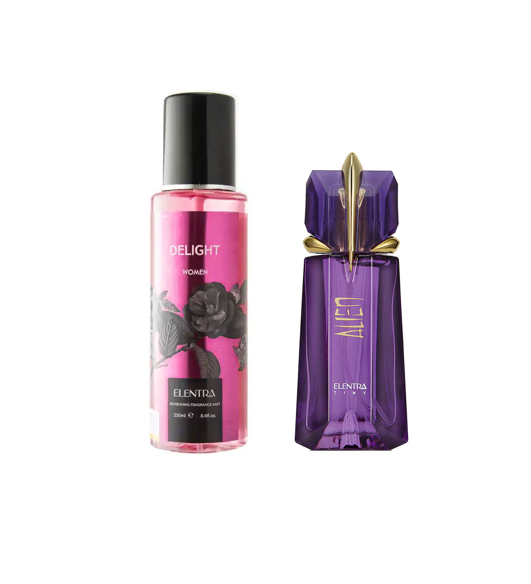 عطر جیبی زنانه تاینی مدل Mugler Alien النترا تاینی به همراه بادی اسپلش زنانه مدل Delight