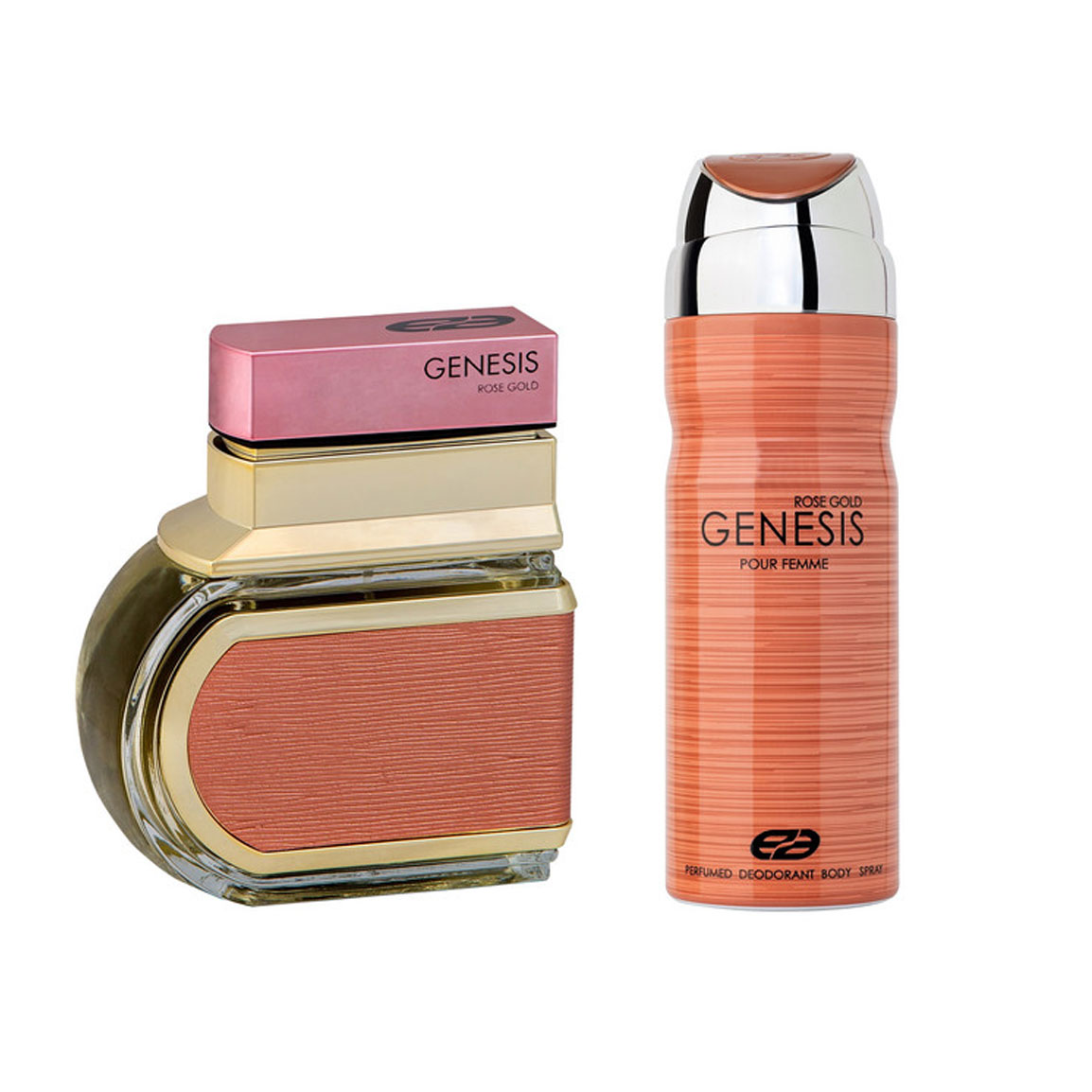 ادو تویلت زنانه مدل Genesis Rose Gold حجم 100 میلی لیتر به همراه اسپری خوشبو کننده بدن زنانه مدل Genesis Rose Gold حجم 200 میلی لیتر