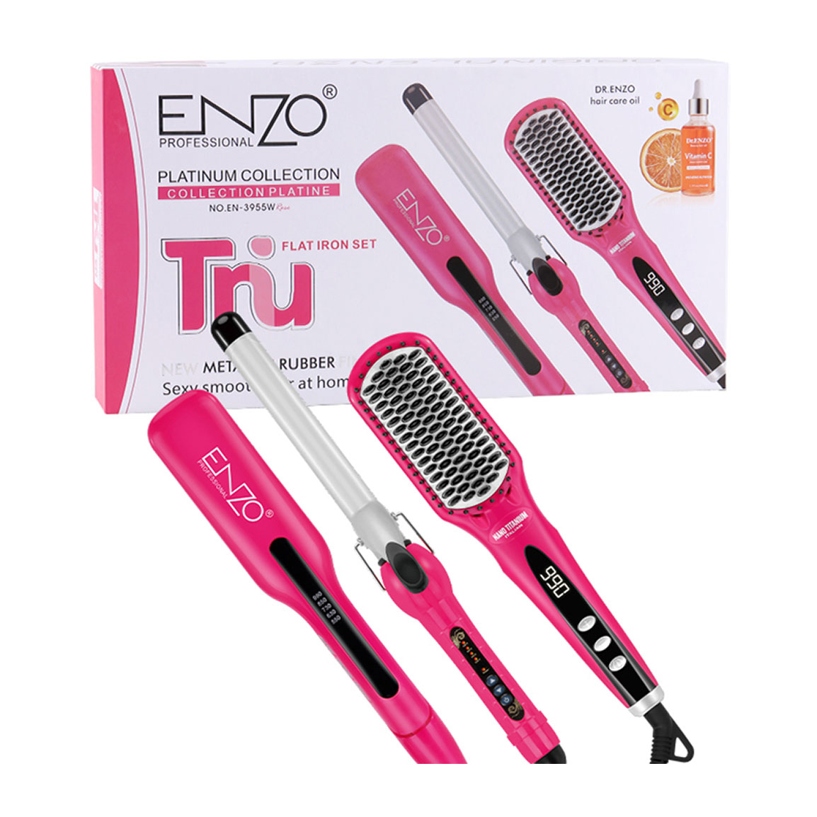 ست سه تکه اتو مو برس حرارتی و فر کننده مدل EN-3955W