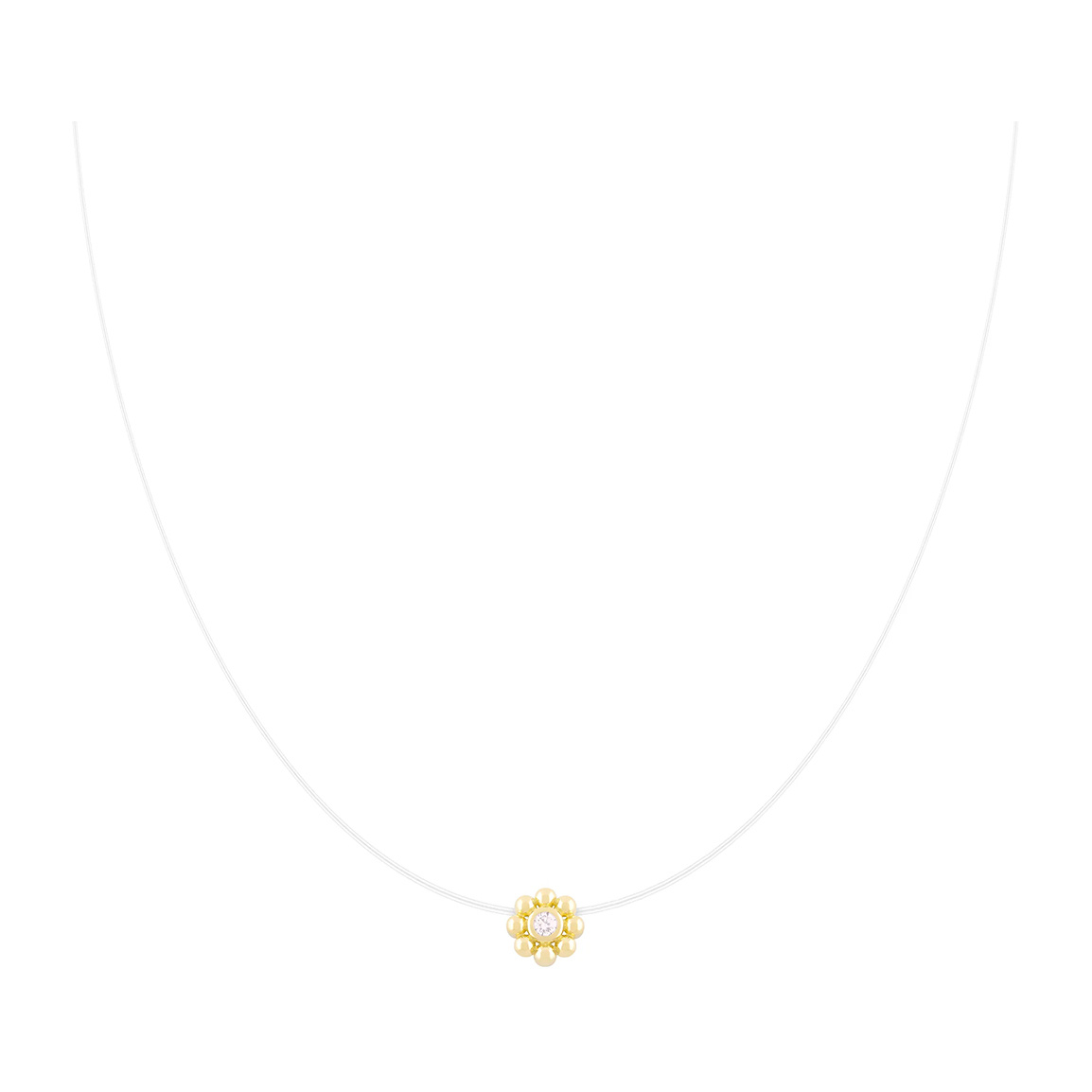 گردنبند نخ نامرئی گل کوچک وسط نگین سفید