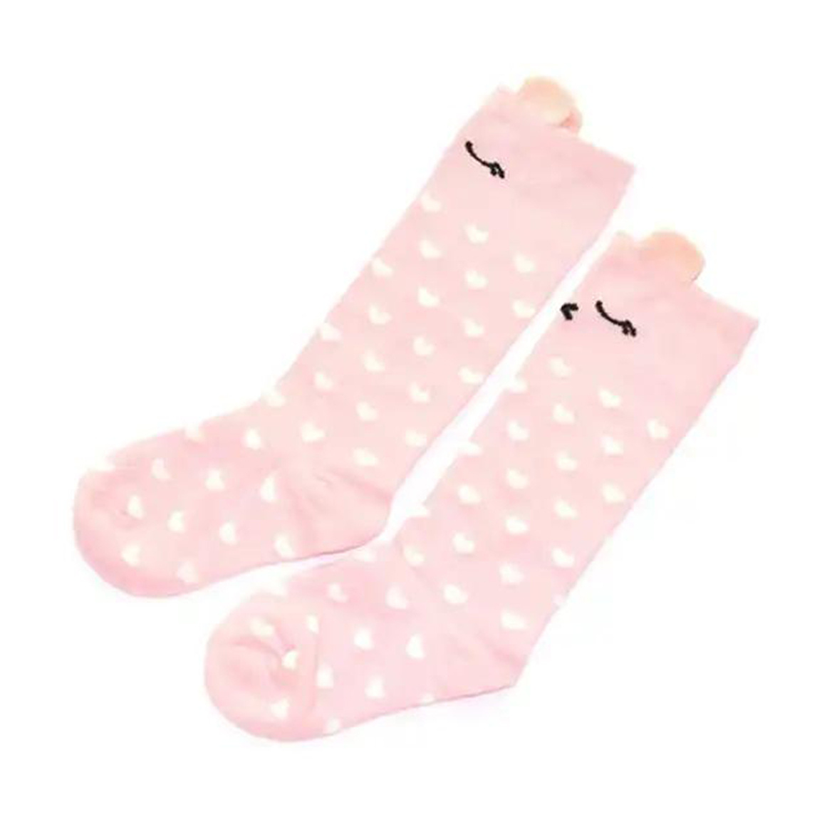 جوراب دخترانه ساق بلند طرح قلبی 2 تا 3 سال