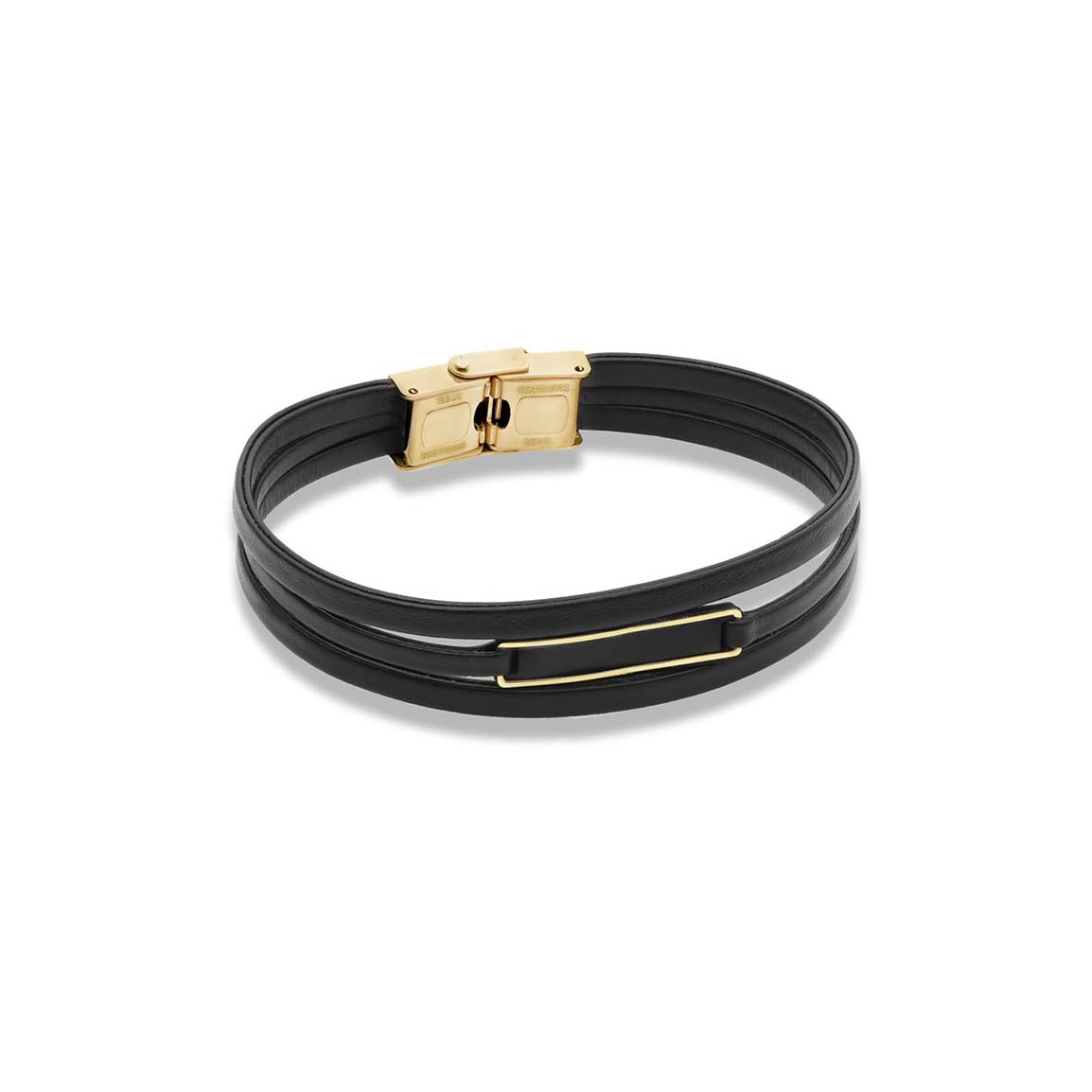 دستبند طلا 18 عیار مدل مستطیل بلند و چرم