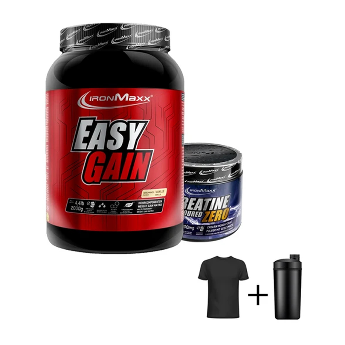 پودر گینر ایزی گین، همراه پودر کراتین زیرو به همراه تیشرت و شیکر