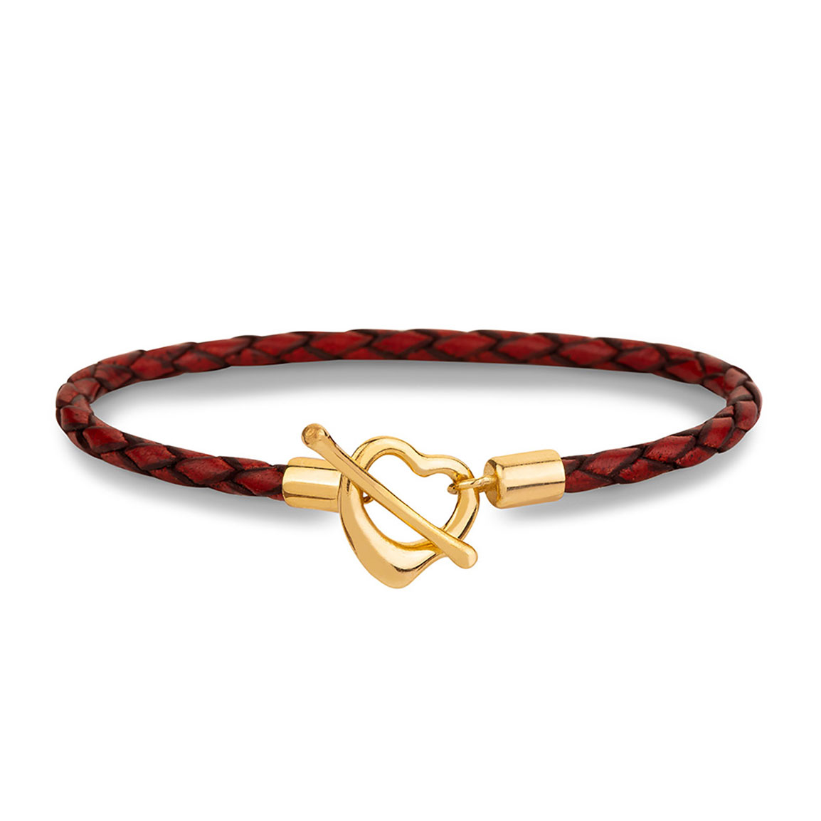 دستبند چرم و طلا 18 عیار زنانه مدل قلب و قلاب کد BM427