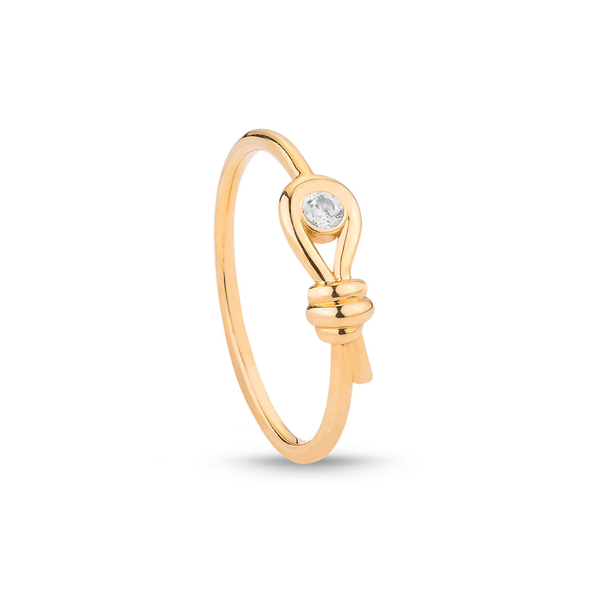 انگشتر طلا 18 عیار زنانه مدل تک سنگ اشک پیچ سایز 54 کد RMOH096