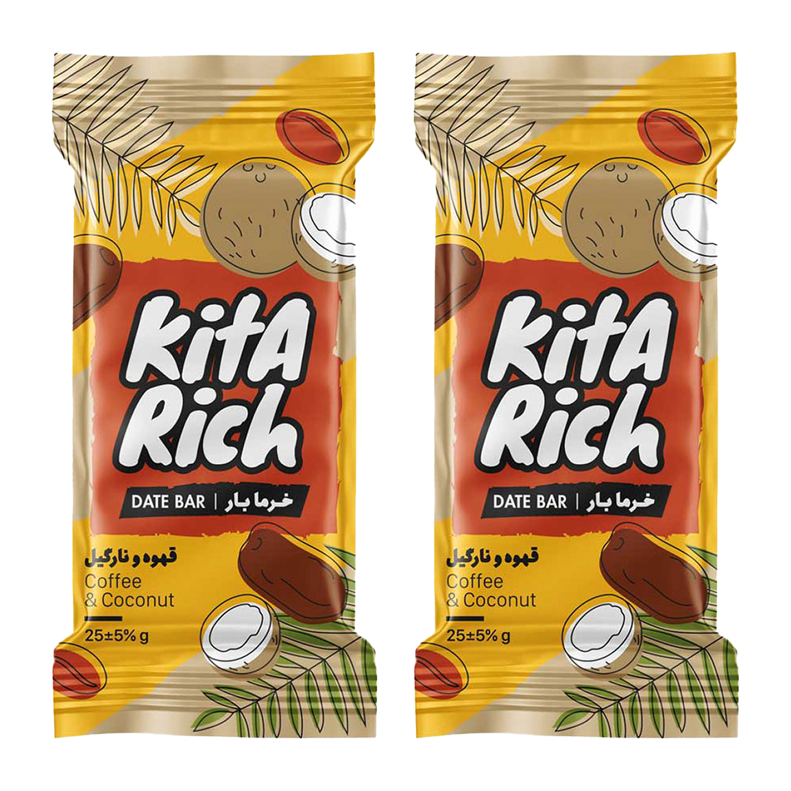 پک 2 عددی خرما بار قهوه و نارگیل وزن 25 گرم