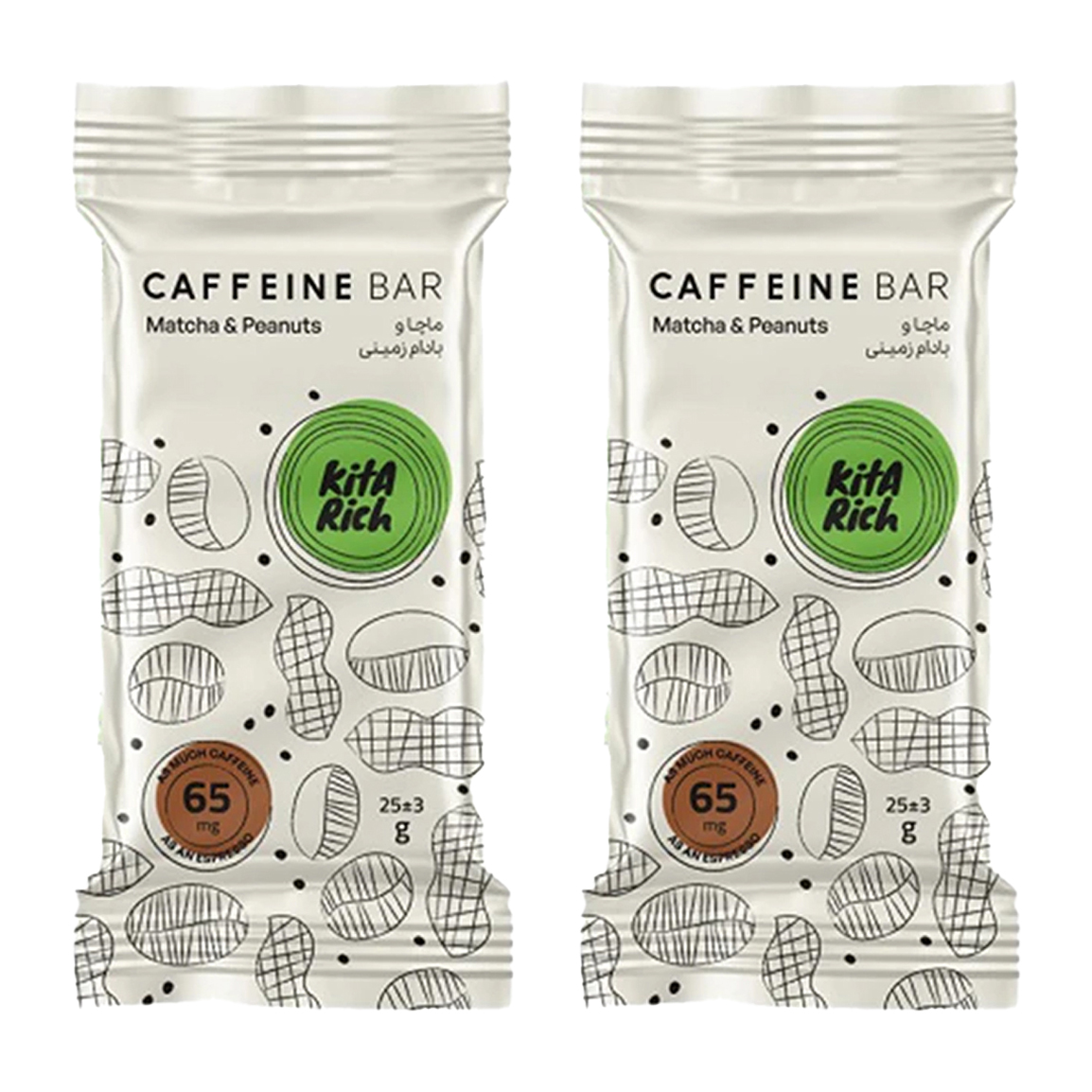 پک 2 عددی کافئین بار با طعم ماچا و بادام زمینی وزن 25 گرم
