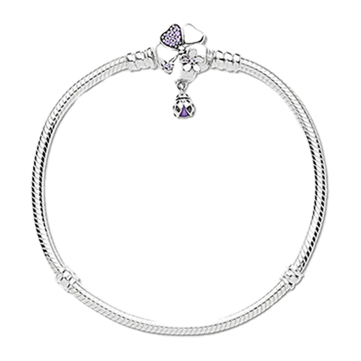 دستبند نقره مدل دقایق گل بنفش و کفشدوزک سایز 20