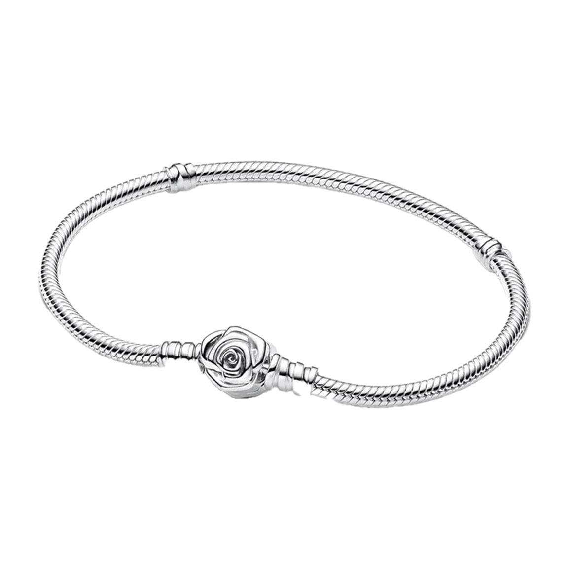 دستبند نقره مدل دقایق گل رز شکفته زنجیر ماری سایز 21