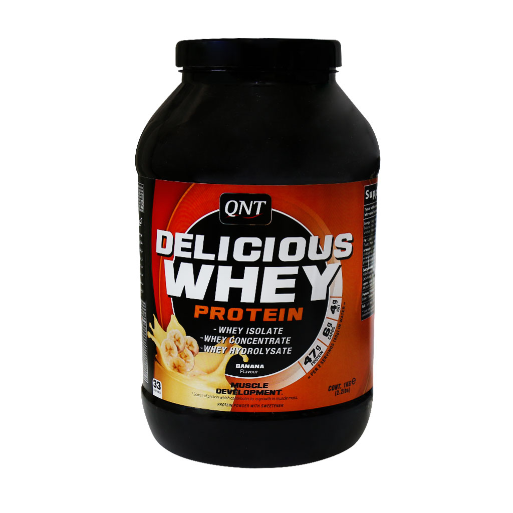 پودر پروتئین وی مدل Delicious با طعم موز وزن 1000 گرم