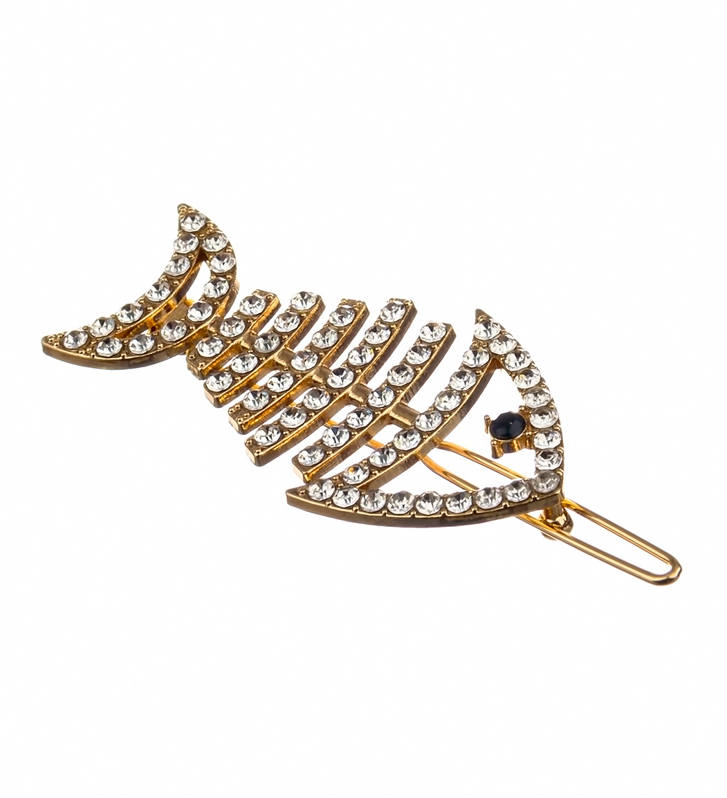 سنجاق نگینی فسیل ماهی طلایی فلزی کد zv114