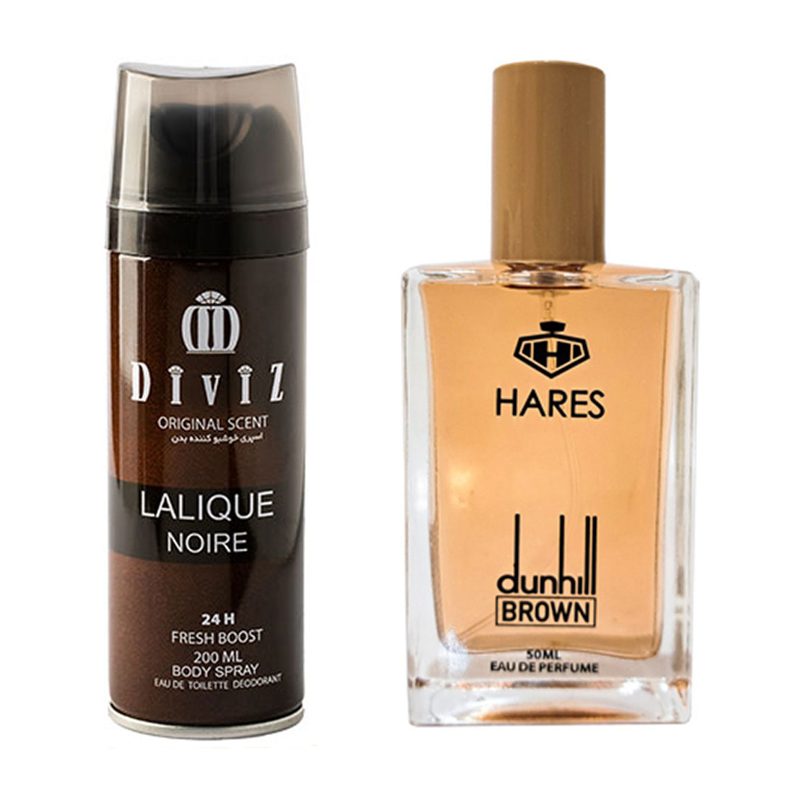 پک هدیه روز مرد 2 عددی شامل اسپری بدن مدل Lalique Noire و ادوپرفیوم مدل Dunhill Brown