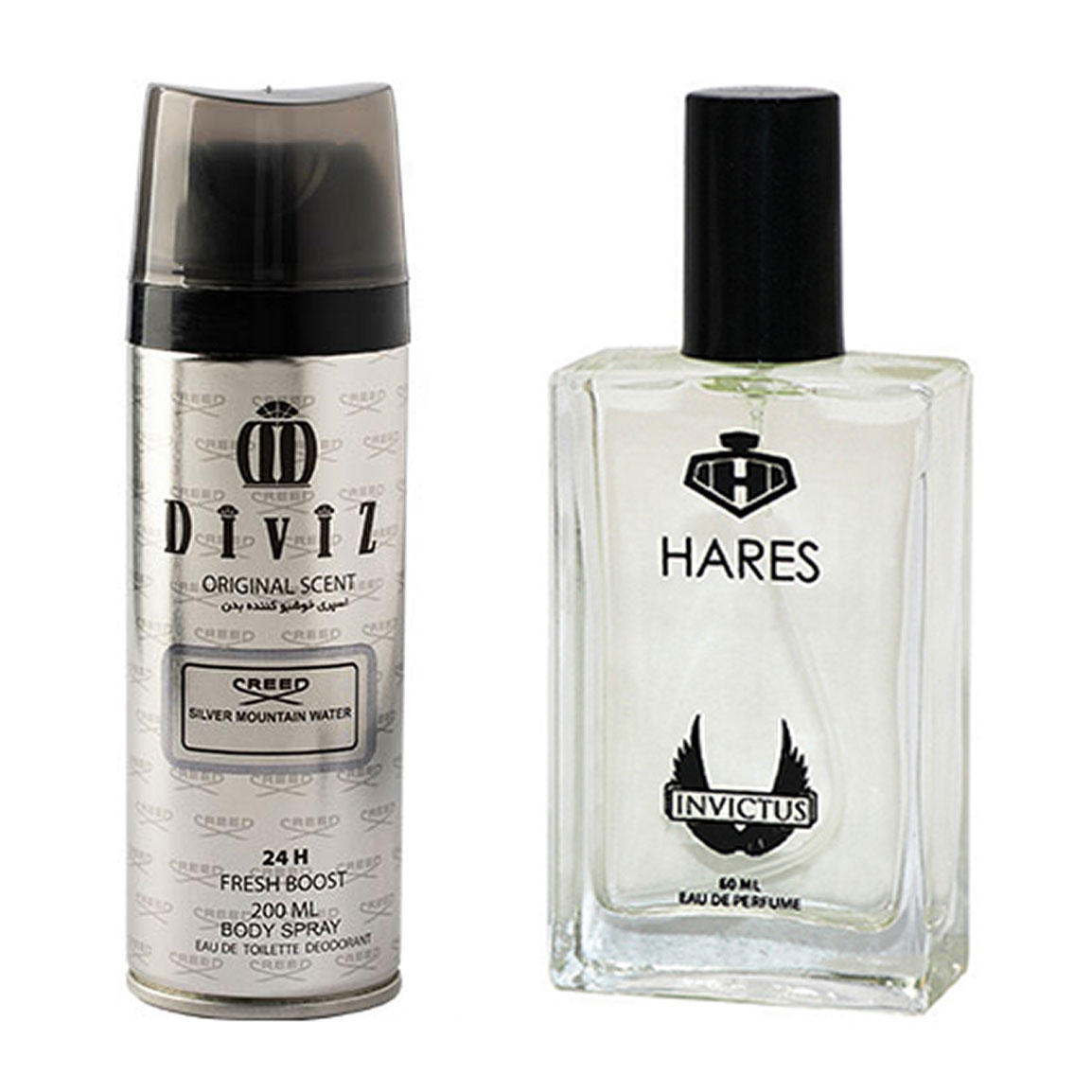 پک هدیه روز مرد 2 تایی شامل اسپری بدن مدل Creed Silver Mountain Water و ادوپرفیوم مدل Invictus
