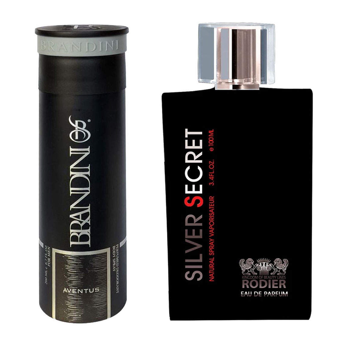 پک هدیه روز مرد 2 عددی شامل اسپری مدل Aventus و ادوپرفیوم مدل Silver Secret