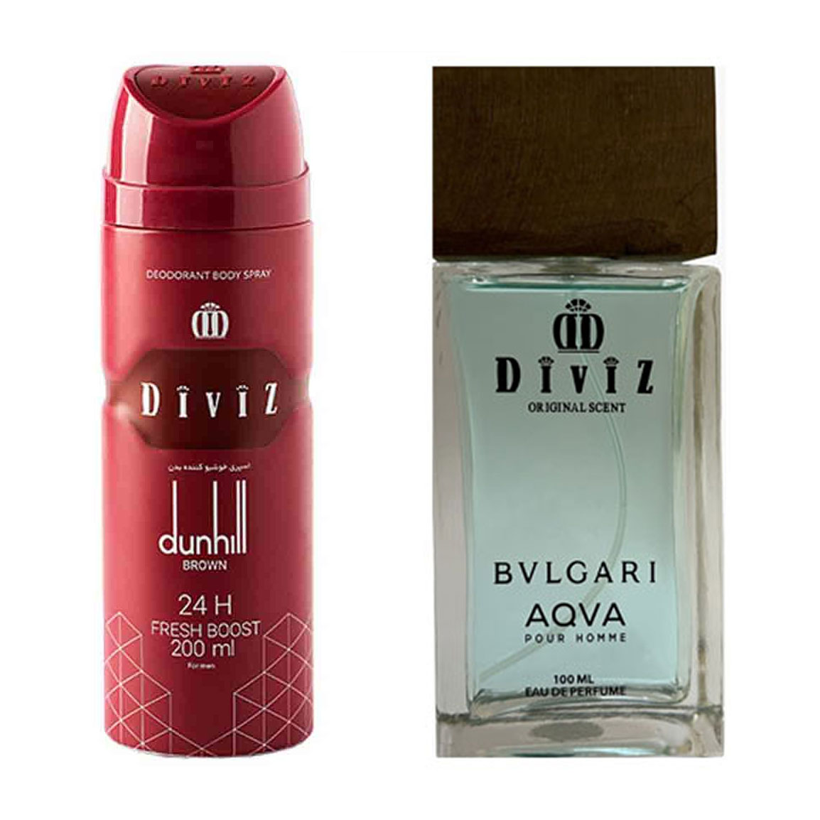 پک هدیه روز مرد 2 عددی شامل اسپری بدن مدل Dunhill Brown و ادوپرفیوم مدل Aqva Bvlgari