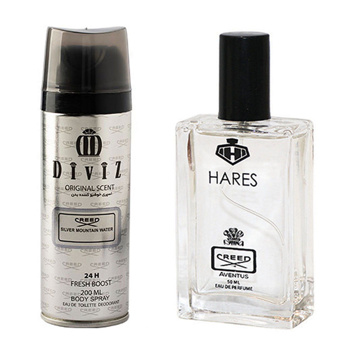 پک هدیه روز مرد 2 عددی شامل اسپری بدن مدل Creed Silver Mountain Water و ادوپرفیوم مدل Creed Aventus