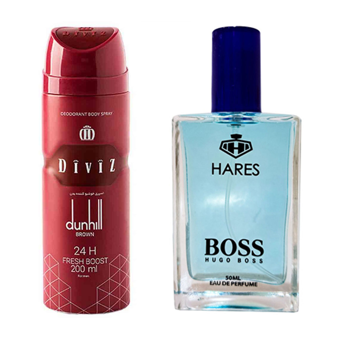 پک هدیه روز مرد 2 تایی شامل اسپری بدن مدل Dunhill Brown و ادوپرفیوم مدل Hugo Boss