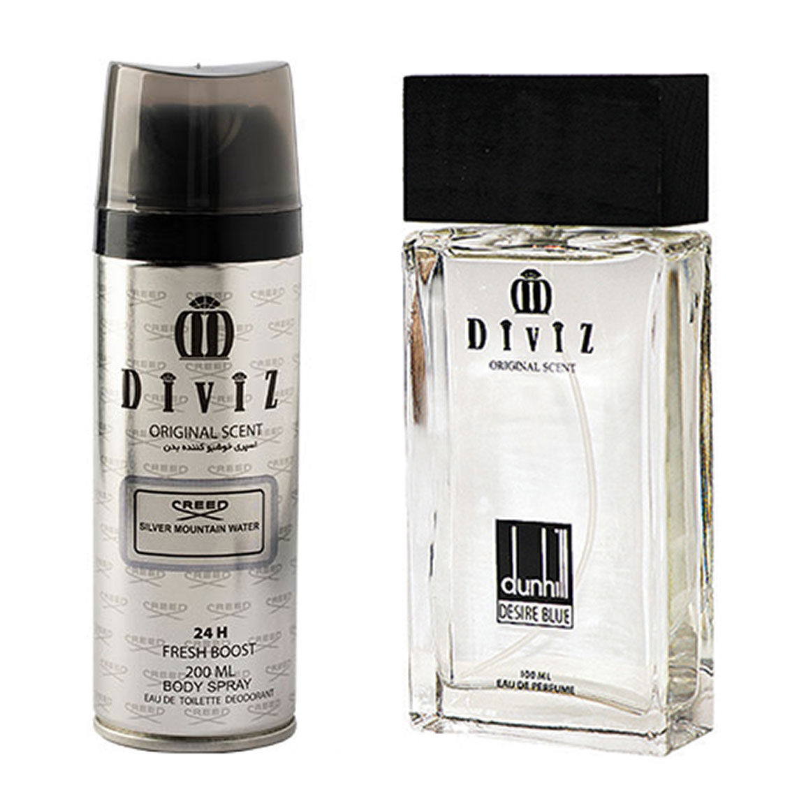 پک هدیه روز مرد 2 عددی شامل اسپری بدن مدل Creed Silver Mountain Water و ادوپرفیوم مدل Dunhill Desire Blue