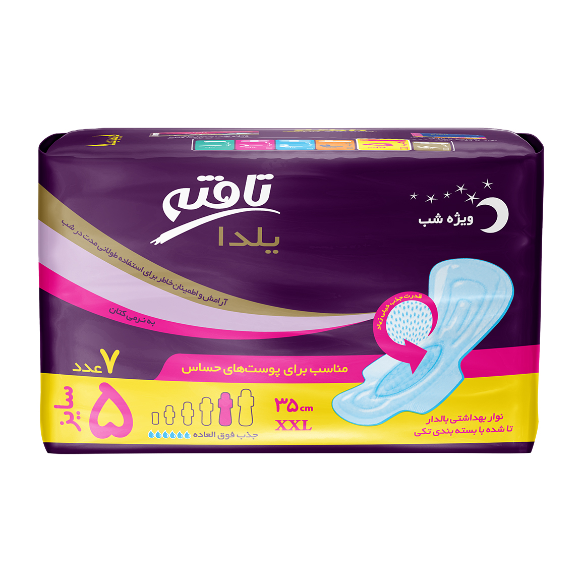 نوار بهداشتی بالدار یلدا ویژه شب به نرمی کتان سایز XXL مناسب پوست حساس 7 عددی کد 9145