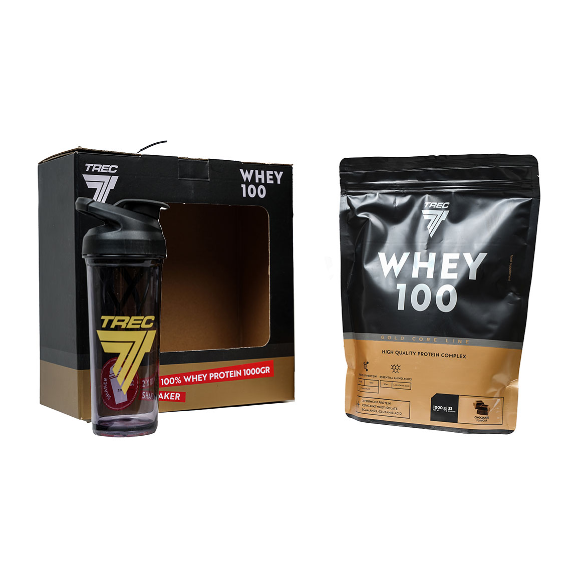 پروتئین وی مدل 100 Trec Whey با طعم شکلات وزن 1000 گرم به همراه شیکر هدیه